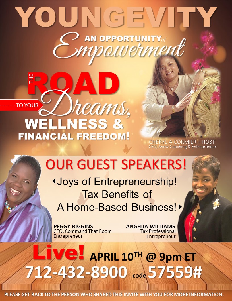 Peggy will share her personal story of resilience and the joys of entrepreneurship. Angelia, as a tax professional, will share the benefits of a home-based business!